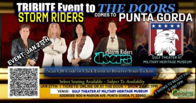 ?Tuesday Jan 27th, 2026 in Punta Gorda – Storm Riders The Doors’ Experience makes their debut at Gulf Theater at the Military Heritage Museum for a special tribute show to The Doors’ greatest.