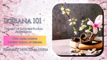 Explore the enchanting world of Japanese flowers through the art of ikebana. A certified instructor will guide you through the fundamentals as you learn to create two unique arrangements expressing your own individuality. Leave with a beautiful arrangement to enjoy at home as well as supplies for future creations.