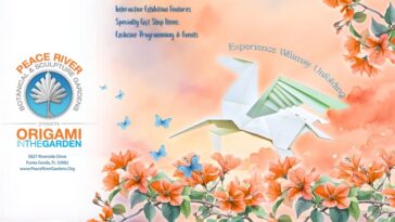 Come walk among cranes, koi, butterflies, and blossoms. Let your imagination take root. And discover the profound beauty of folded form, reborn in metal, bathed in sunlight, and nestled among the blooms of Peace River Gardens.