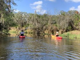 Our journey begins as we paddle our kayaks through the winding waterways of the Peace River. Discover the hidden treasures of this pristine ecosystem, where gopher tortoises and wading birds call home. You will find yourself surrounded by native flowering plants while immersing yourself in the peaceful serenity of nature.