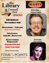 The magic will continue at The Library as we pull Logan Light out of our hat… and put him up on stage. Logan is a professional magician conveniently based out of Southwest Florida. For over a decade, Logan has been performing the art of comedy magic for audiences of all ages and sizes. Using sleight of hand, along with comedy and storytelling, mixed with a little bit of physics… Logan creates a fun and insightful experience that takes the audience on a journey through their own imaginations. Featuring Joe Latham. Thursday, November 6th. Showtime 7:30 pm. Admission $15. Reservations: 305 343-2930 / [email protected].