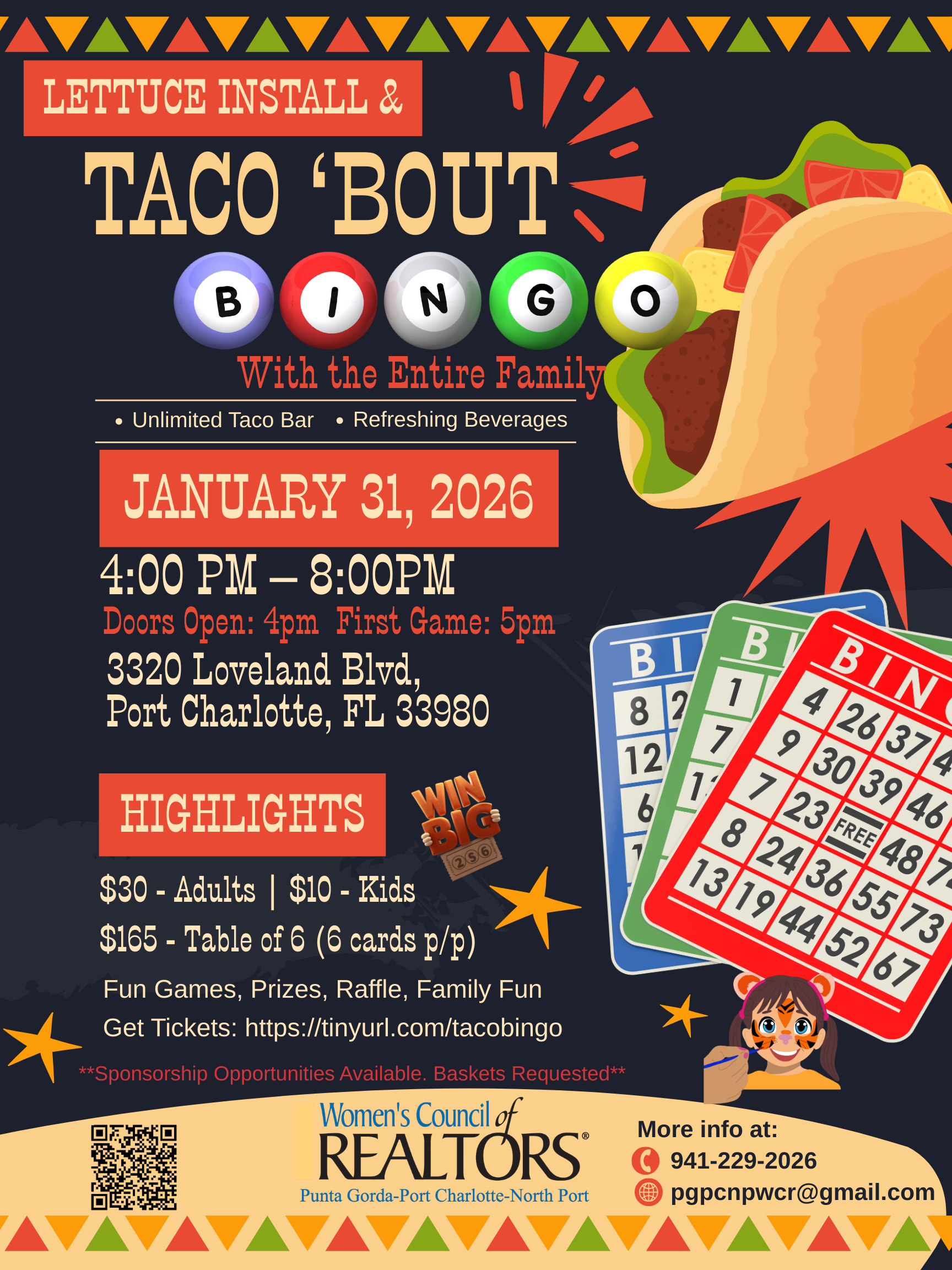 3320 Loveland Blvd, Punta Gorda, FL 33980-7403, United States 3320 Loveland Blvd, Punta Gorda, FL 33980-7403, United StatesTacos + Bingo + Installation = FUN! Join us for Taco Bingo Night as we celebrate the installation of the new Women’s Council of REALTORS® leadership board and kick off a year focused on community and growth. Enjoy tacos, bingo, and great prizes, sponsored by Christopher Kubacki Law. Personal Injury, Maritime and Auto accidents. Open […]
