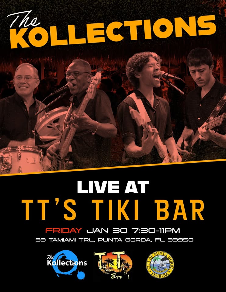 TT's on Charlotte Harbor 33 Tamiami Trl, Punta Gorda, FL, USThe Kollections are back at TT’s On Charlotte Harbor! Join us on Friday, January 30th from 7:30-11pm for a rockin’ good time! This event is open to the public.